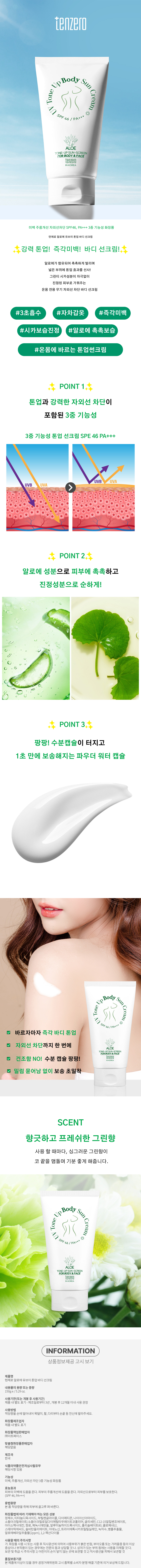 텐제로 알로에 UV 톤업 바디 선크림 (SPE 46) 150g